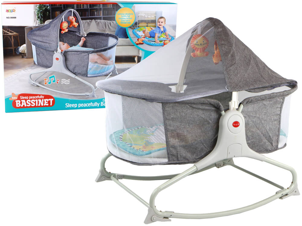 - Diseño 3en1: Funciona como cuna, mecedora y colchoneta para jugar en el suelo.