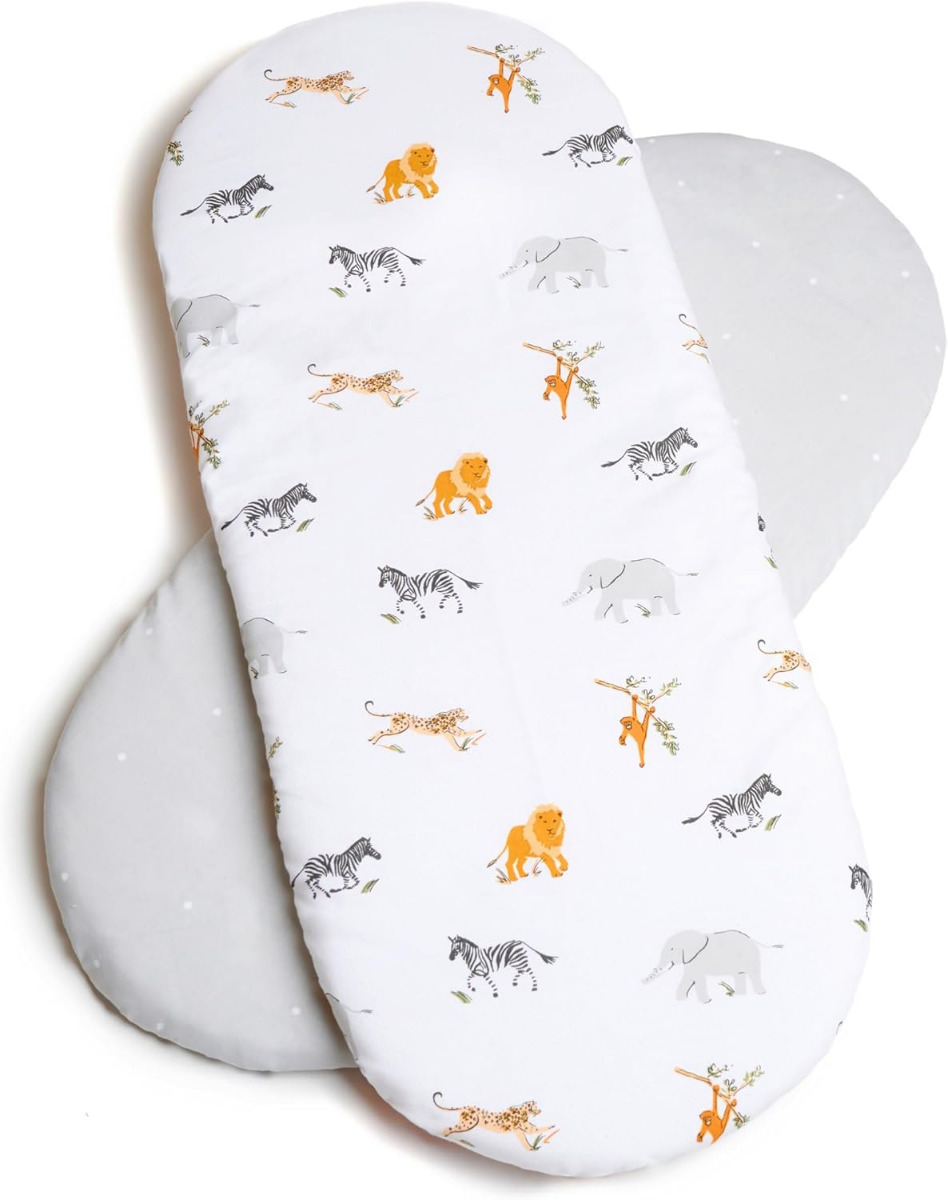 Transforma el espacio de descanso de tu bebé con estas encantadoras sábanas ajustables inspiradas en el safari. Con un estampado de animales de la jungla, esta colección lleva la aventura directamente a la cuna. El pack incluye una sábana con un diseño safari y una sábana adicional en gris con puntos, para una mezcla perfecta de estilo y elegancia.
