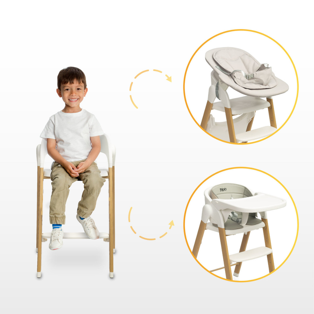 Crece con tu hijo: Con una estructura que soporta a niños desde los 6 meses hasta aproximadamente los 3-4 años, la silla Triplo incluye un insertable especial que la convierte en una hamaca para bebés. Además, el reposapiés ajustable permite personalizar la posición de tu hijo en la silla para mayor comodidad.