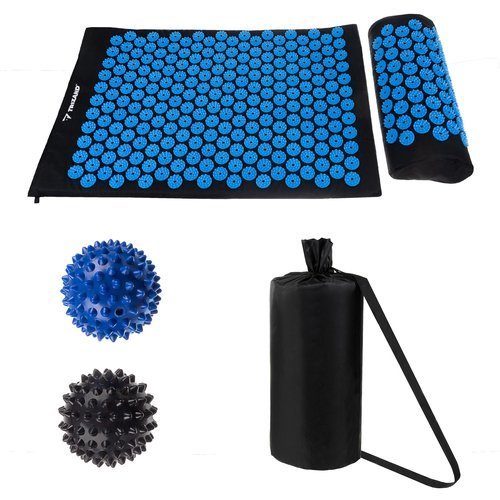 El conjunto Trizand contiene todo lo que necesitas para disfrutar de los beneficios de la acupresión: una esterilla y una almohada de acupresión, y dos bolas con púas para masaje. No tendrás que buscar aparatos de masaje adicionales, ¡todo lo que necesitas está incluido!