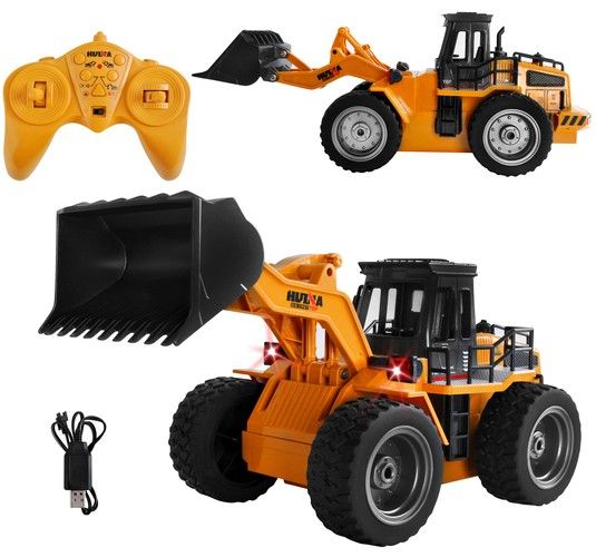 - MANDO A DISTANCIA 6 CH - El bulldozer se controla con un mando a distancia de seis canales con transmisor profesional e intuitivo sobre la frecuencia de 2,4 GHz, que permite controlar los movimientos del vehículo. El pequeño operador puede usarlo para mover la máquina hacia adelante, girar hacia la derecha o hacia la izquierda y girar el brazo con una cuchara hacia arriba y hacia abajo para que podamos transportar arena, piedras u otros materiales a varios lugares. El control remoto tiene un alcance de 30 a 50 metros, lo que le da al niño mucha libertad mientras juega.