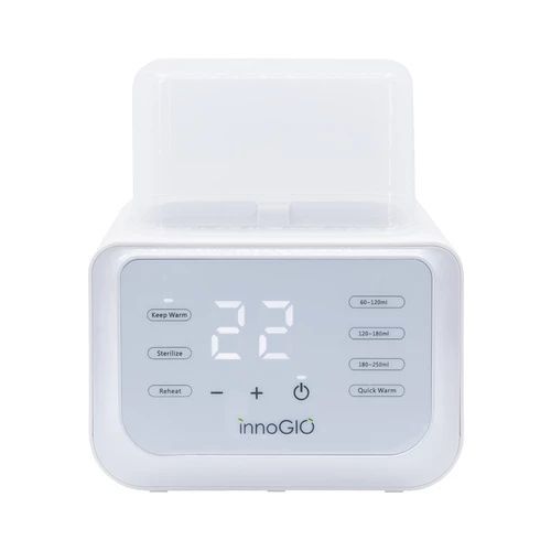 El Calentador y Esterilizador Doble INNOGIO GIO-375 es ideal para padres que buscan un dispositivo versátil. Permite calentar o descongelar dos biberones o alimentos al mismo tiempo, y esteriliza eficazmente. Con 5 modos de funcionamiento, un panel digital táctil y una alta potencia, garantiza un calentamiento rápido y seguro. Incluye protección contra sobrecalentamiento y apagado automático tras la esterilización.