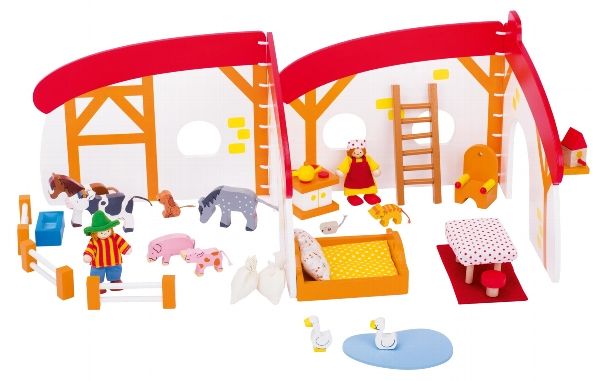 Una granja completa de 35 piezas, con muñecos y muchos accesorios. Las paredes flexibles brindan una infinita variedad de posibilidades y se adaptan bien al complejo e incluso caótico mundo de la habitación de los niños.