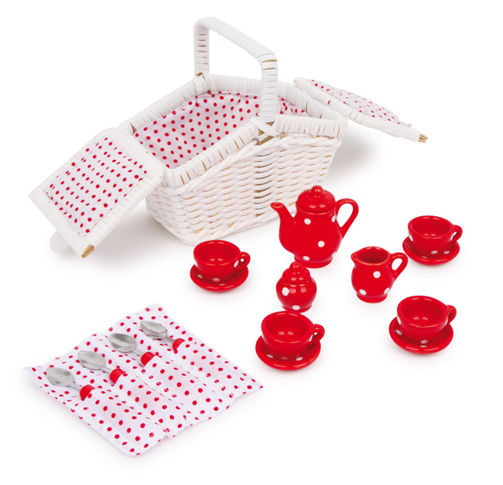 Esta cesta de pícnic blanca está pensada para las pequeñas mamás que siempre han deseado organizar una divertida merienda con sus muñecas o sus peluches. Los accesorios pueden transportarse fácilmente en la cesta de plástico trenzado.