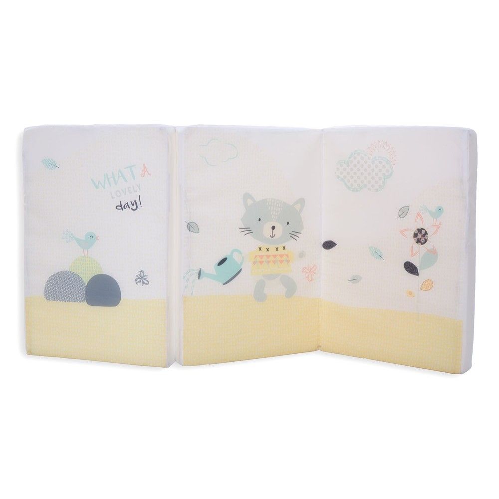 Este colchón plegable tiene un precioso diseño de un gatito. Es plegable e ideal para cunas de 60 x 120 cm , teniendo un grosor de 5 cm.