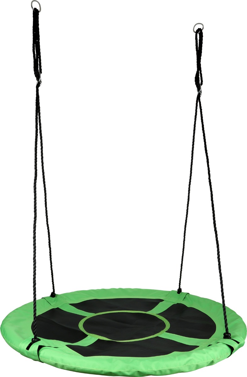 ¡Mucha diversión al columpiarse! Este columpio de material resistente se eleva en el aire y dispone de espacio en el asiento extragrande para dos amantes de las alturas.