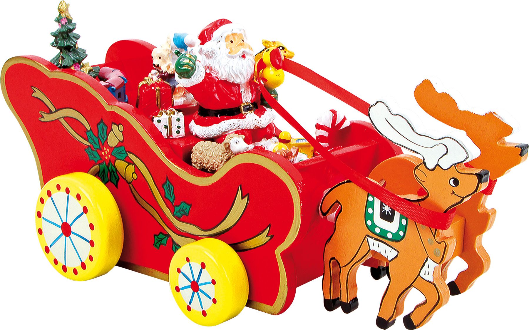 Esta bellisima caja musical tiene un efecto especial : Al tocar la melodía navideña "Santa Claus is coming to town", los ositos dan vueltas y la carroza avanza lentamente.