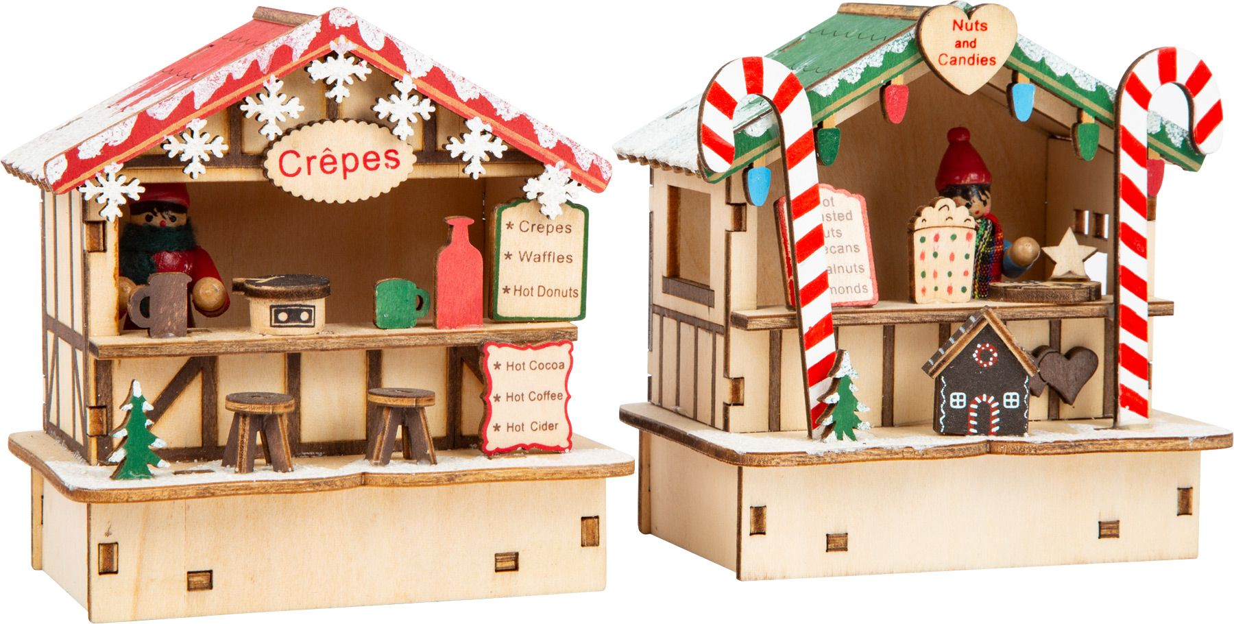 ¿Quién no tiene ganas de visitar el mercado de Navidad con este espectáculo? La iluminación LED funciona con dos pilas AA y se puede encender y apagar con pequeños interruptores.