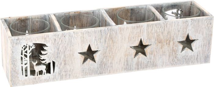 Estos cuatro portavelas es el complemento ideal para la decoración navideña. Gracias a su elegante estilo Shabby Chic combinan en cualquier ambiente y su llama da una sensación reconfortante. No incluye velas de té.