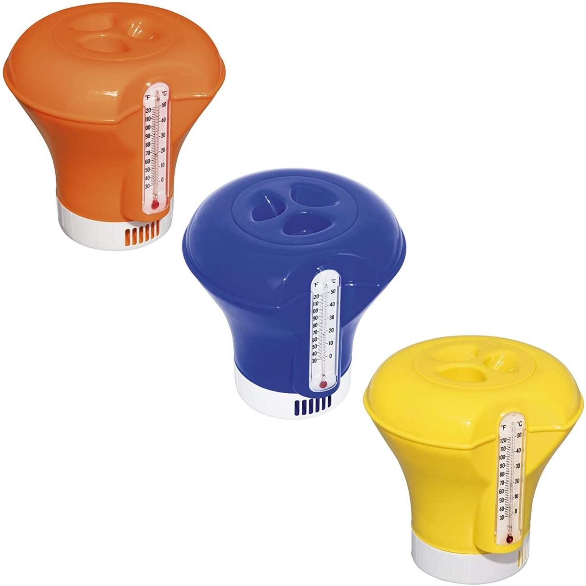 TIENE UN TERMÓMETRO: el dispensador flotante para productos químicos está equipado con un termómetro que muestra los valores en grados Fahrenheit y Celsius. Le permitirá comprobar la temperatura del agua de la piscina en cualquier momento.
