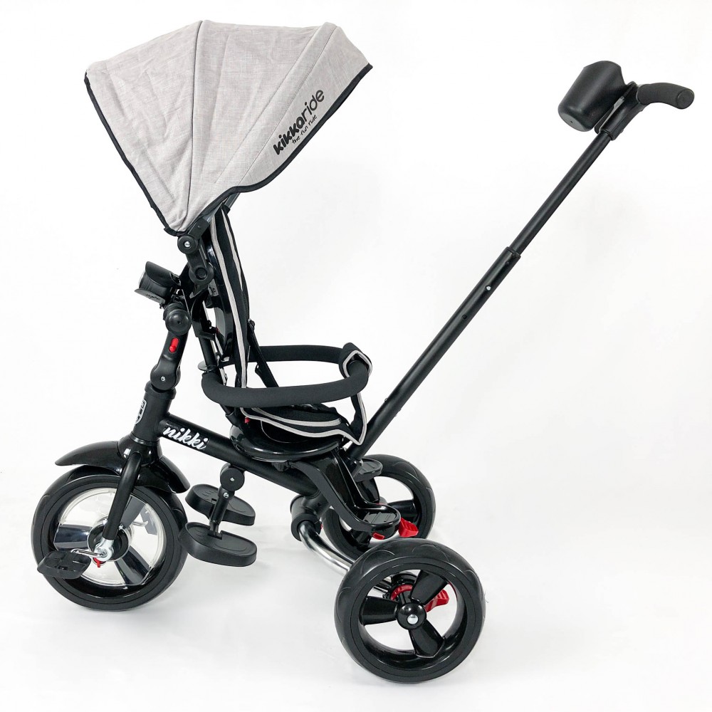 El triciclo Nikki está siendo todo un éxito de ventas y es que su asiento giratorio permite que puedas llevar al niño mirando en el sentido de la marcha o como si fuese una silla de paseo mirando para ti.