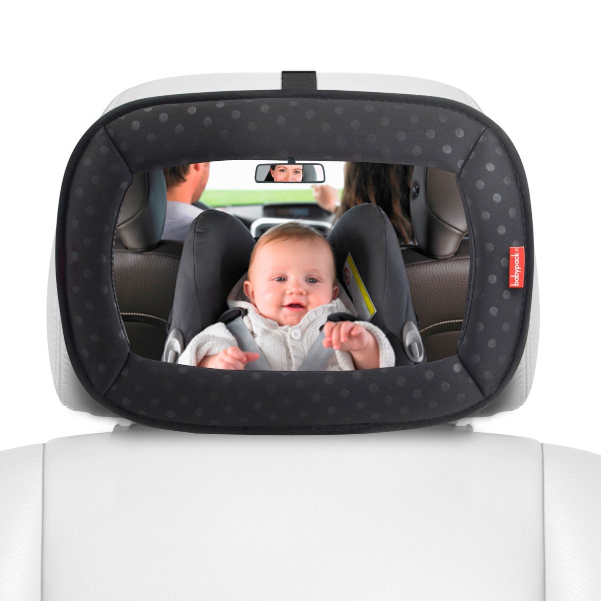 Es un práctico espejo que permite tener a tu bébe siempre a la vista cuando viaja en su sillita en sentido contrario a la marcha. Se instala en el reposacabezas del asiento posterior, ofreciendo una visión amplia y clara de tu bebé desde el puesto de conducción a través del espejo retrovisor.