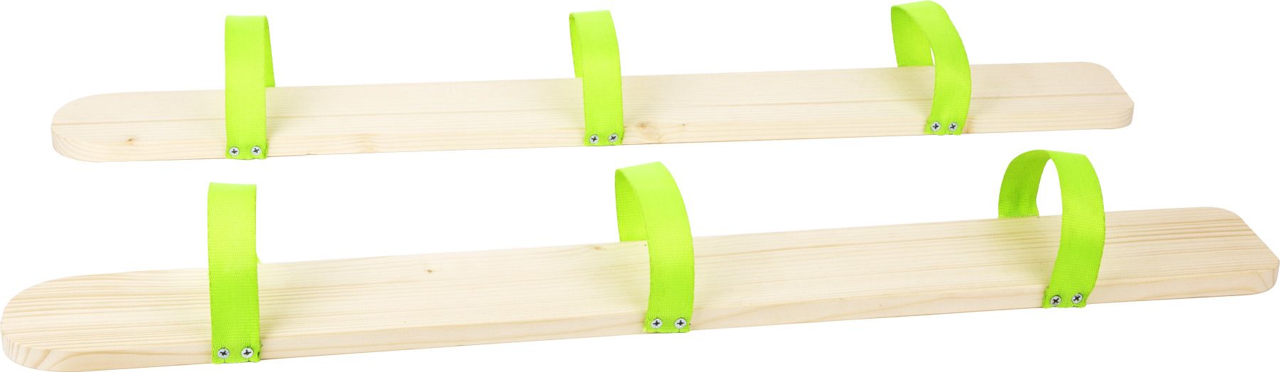 Los pequeños esquiadores ubican sus pies dentro de las correas robustas y se dirigen a la pista. ¡Solo cuando todos se mueven al mismo tiempo se puede avanzar hacia adelante!