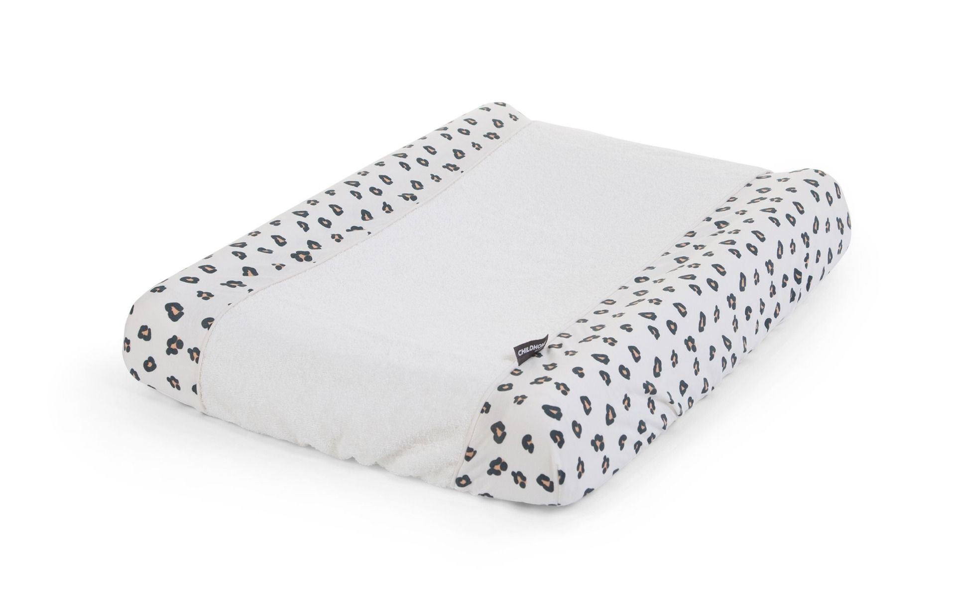 Preciosa funda de colchoneta universal y absorbente con estampado de leopardo que combina lujosa rizo de algodón con punto de alta calidad. De esta manera su bebé estará agradable, suave y cómodo mientras se cambia. ¡Cambiar un pañal nunca ha sido tan fácil! La funda del cojín de lavado está hecha en el centro de algodón de rizo blanco y absorbente. La funda del cojín de lavado está hecha de algodón jersey en el exterior.