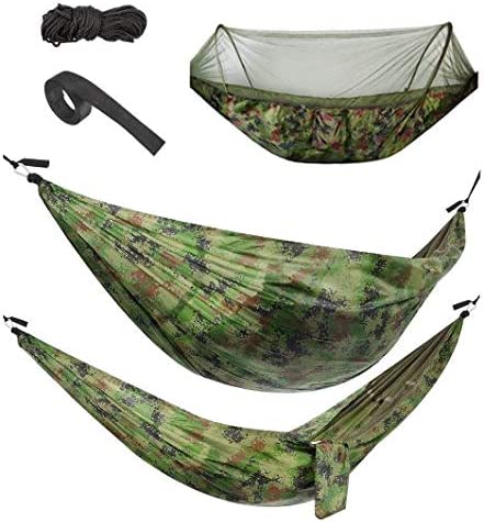 - Esta ligera hamaca es extremadamente cómoda y funcional. Proporciona tranquilidad en viajes o acampadas, y con una mosquitera protege tu cuerpo de los insectos. La hamaca es muy fácil de montar – simplemente cuélgala en cualquier lugar y puedes disfrutar del resto de la larga excursión. El set contiene todas las cosas que necesitas para colgar la tumbona.