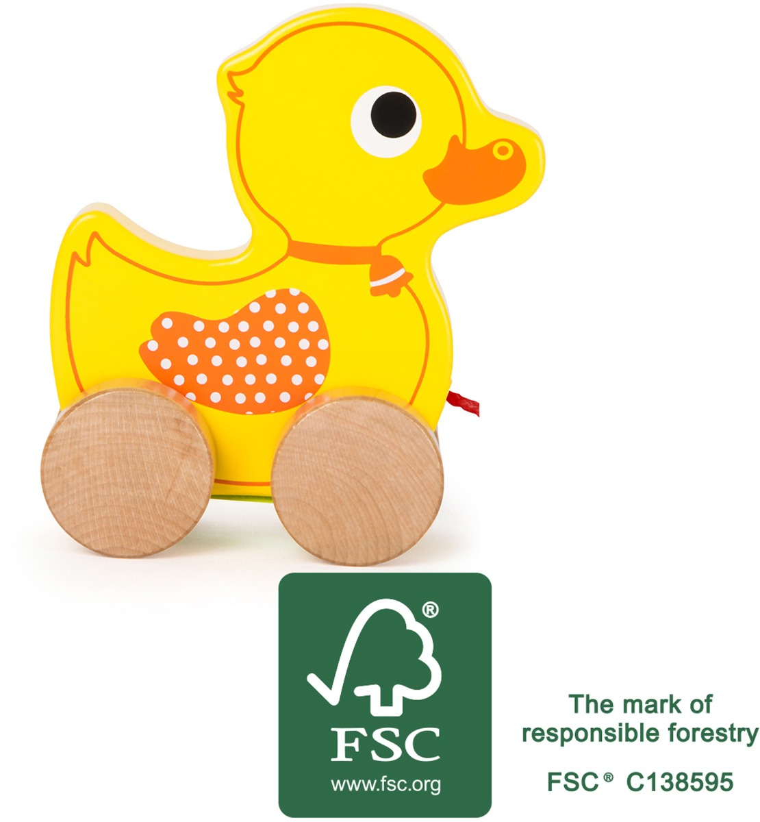 Este tierno patito de madera FSC® 100% certificada, te acompañará a partir de ahora a todos lados. Arrastrándolo con una larga cuerda, el patito te seguirá siempre en sus ruedas, que corren fácilmente.