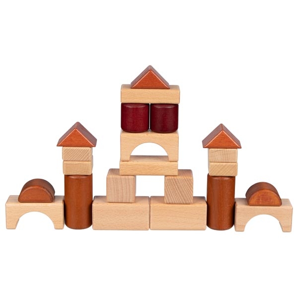 Este bonito juego de construcción consta de 46 piezas en una caja de madera.