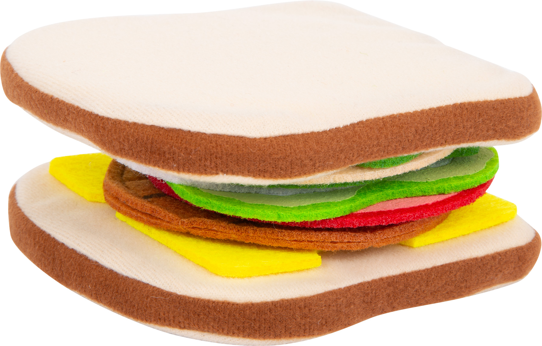 ¡Hoy vamos a comer un sándwich! Con queso, tomate o huevo, no es fácil de elegir. Las rebanadas suaves de pan tostado se pueden cubrir como se desee, como aderezo puedes elegir entre queso, ensalada, pepino, tomate, huevo, salami, salchicha y albóndigas de fieltro.