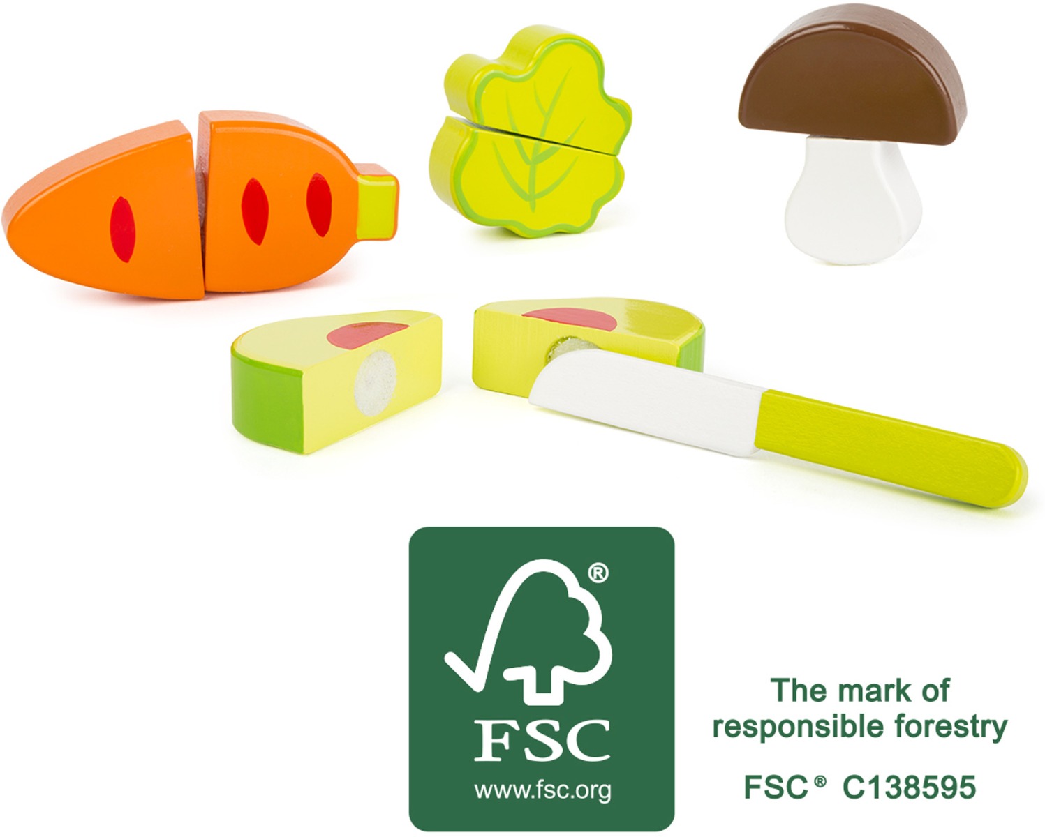 Este set de vegetales son el juguete perfecto para añadir a una cocina de madera. Están fabricados en madera 100% Fsc certificada.