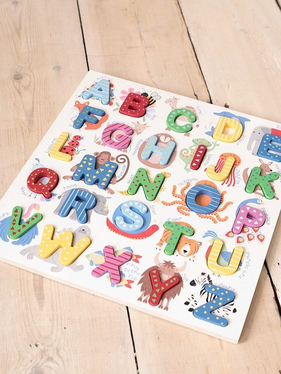 Este puzzle de madera ayuda a enseñar a los niños en edad preescolar el alfabeto a través de adorables animales. Desde hormigas hasta cebras, su pequeño aprenderá el abecedario en poco tiempo.
