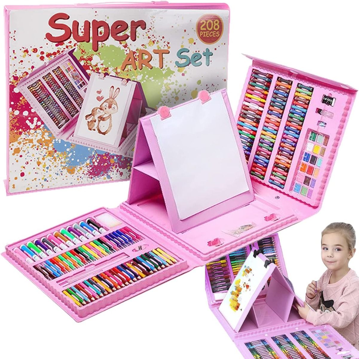 El juego de pintura cuenta con un total de 208 elementos, incluyendo una amplia variedad de herramientas como 12 marcadores gruesos, 24 lápices, 4 crayones de cera, 48 pasteles al óleo, 18 colores de pinturas de acuarela, 24 marcadores, 1 regla, 30 clips, 1 pincel, 1 sacapuntas, goma de borrar, 4 clips, 1 lápiz, 1 paleta, 1 pegamento, 15 hojas A4 y 1 esponja. Con esta variedad de elementos, los artistas podrán plasmar su creatividad sin límites.