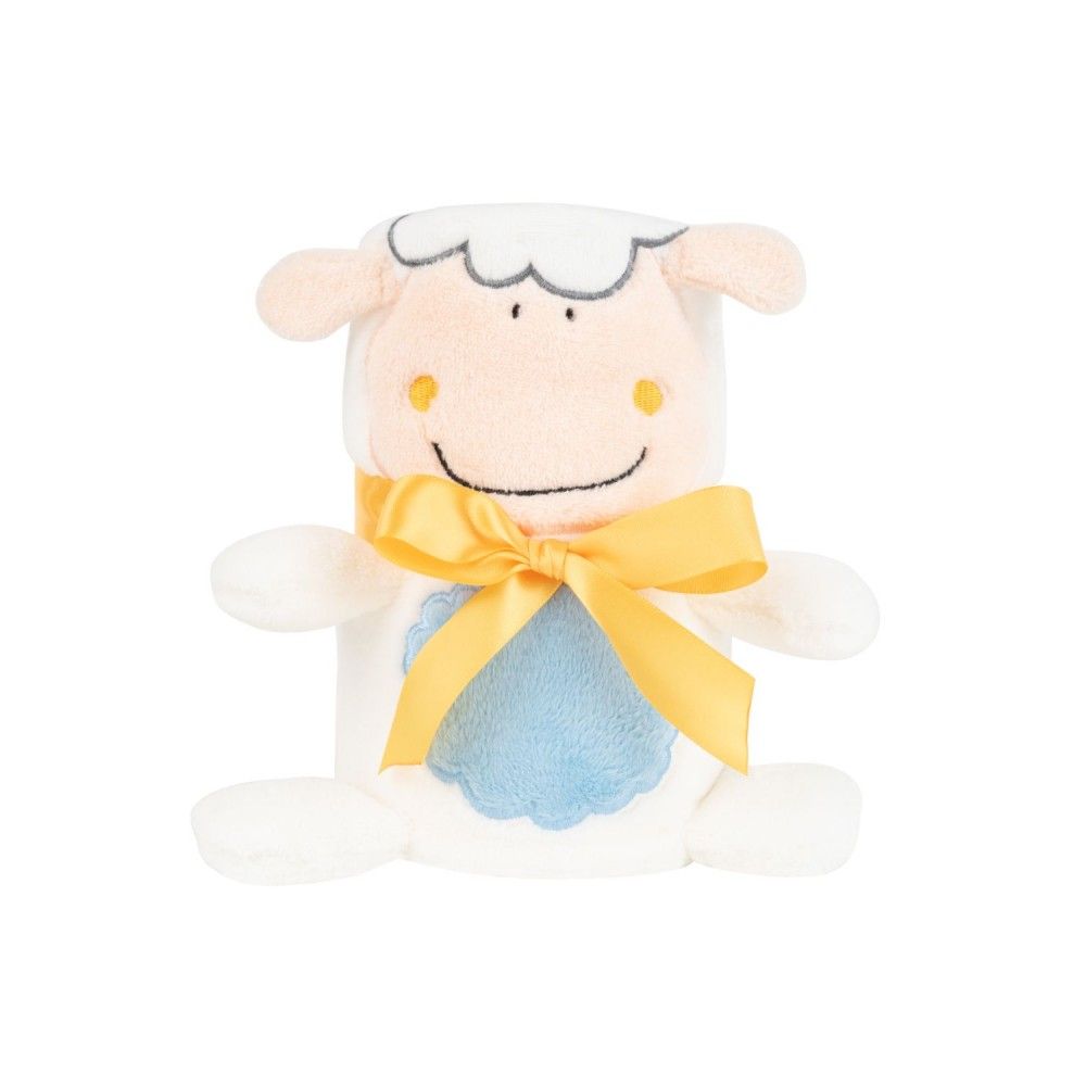 Suave manta 3D con cara de ovejita. Mide 75 x 100 cm y está fabricada en suave poliester.