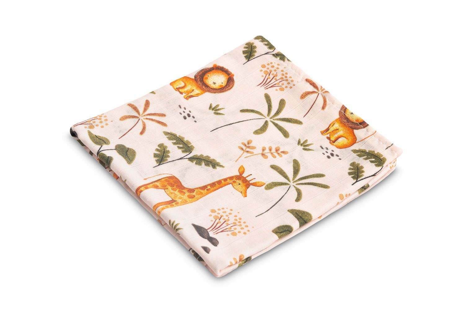El encantador diseño "Cute Safari", con sus adorables animales en tonos suaves, agrega un toque de ternura y estilo a cualquier ocasión. Además de ser visualmente atractiva, la muselina es conocida por ser extremadamente suave y segura para la piel sensible de los bebés, garantizando que tu pequeño esté siempre protegido y cómodo.