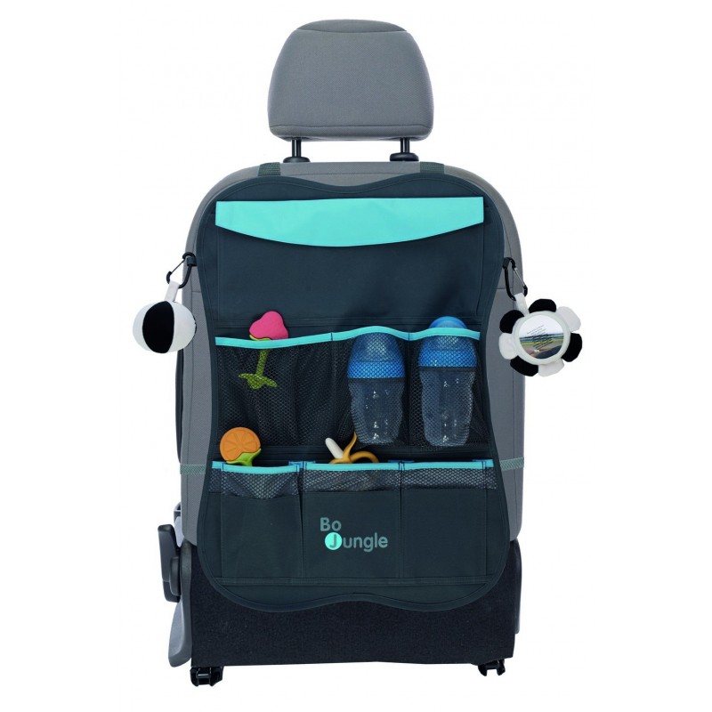 Este organizador para asiento de coche protegerá la parte posterior del asiento de las huellas de los zapatos sucios de tus hijos pero además en él podrás llevar recogidos juguetes, biberones, libros ... de sus hijos.