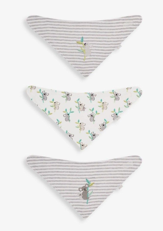 Este conjunto de baberos para bebé tipo bandana con diseño Koala son esenciales para cuidar toda su ropita y mantener el bebé seco durante la lactancia, biberón o como seca babitas. Este set de baberos incluye 3 unidades en distintos estampados pero con el motivo Koala a juego con el pijama y gorrito Koala de Jojomamanbebe.