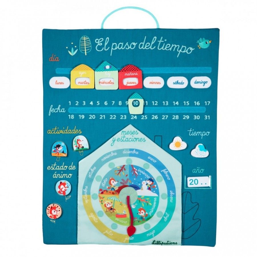 Los niños aún no tienen bien formado su sentido del tiempo: ayer significa algo que ha terminado y mañana significa ahora. Con este panel, tu pequeño comprenderá mejor cómo transcurre el tiempo, y aprenderá los días, los meses y las estaciones. Así, enseñarás a tu hijo de una forma divertida qué día es, cuántas estaciones hay y qué planes divertidos tiene para la semana que viene, todo ello con ayuda de tarjetas y broches de velcro.