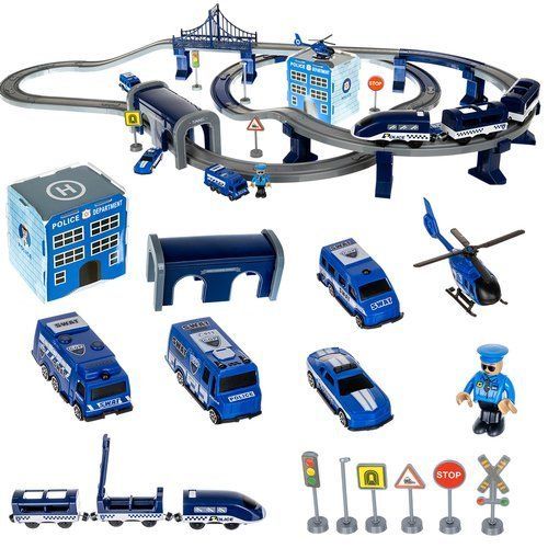 INCREÍBLE - la pista de carreras de la policía es un juguete que hace realidad los sueños de los niños. Es una combinación exitosa de muchas pasiones de los niños, incluyendo pistas y trenes, carreras de coches y, por supuesto, la policía.
