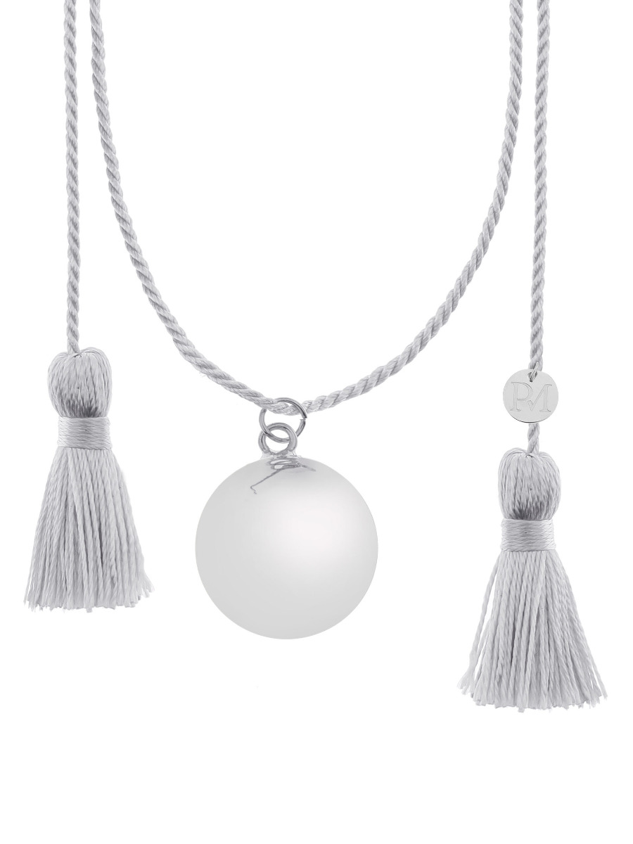 Proudmama presenta esta bola llamador de ángeles en plata y cordón con borlas. Un llamador de ángeles es una hermosa pieza de joyería con un mensaje especial. Según una antigua tradición, las bolas con campanilla trae felicidad, salud y prosperidad a la madre y, en este caso, al niño por nacer. El suave sonido de la campana también contribuiría a un embarazo relajante.