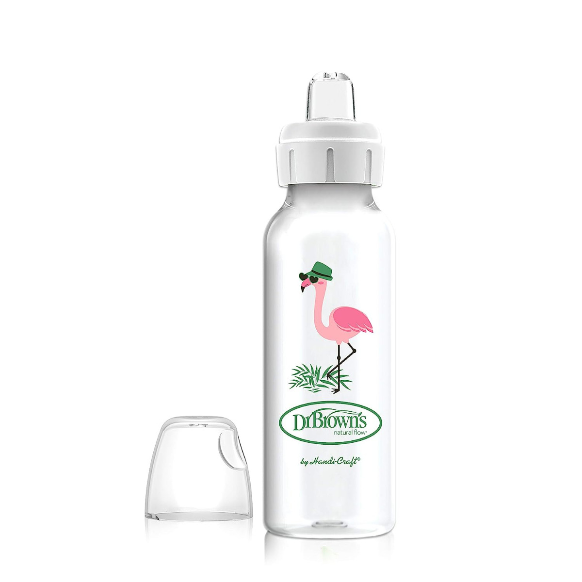 - Biberón realizado con diseños divertidos que alegran al bebé, a elegir entre estampado zorrito, conejito y flamenco.