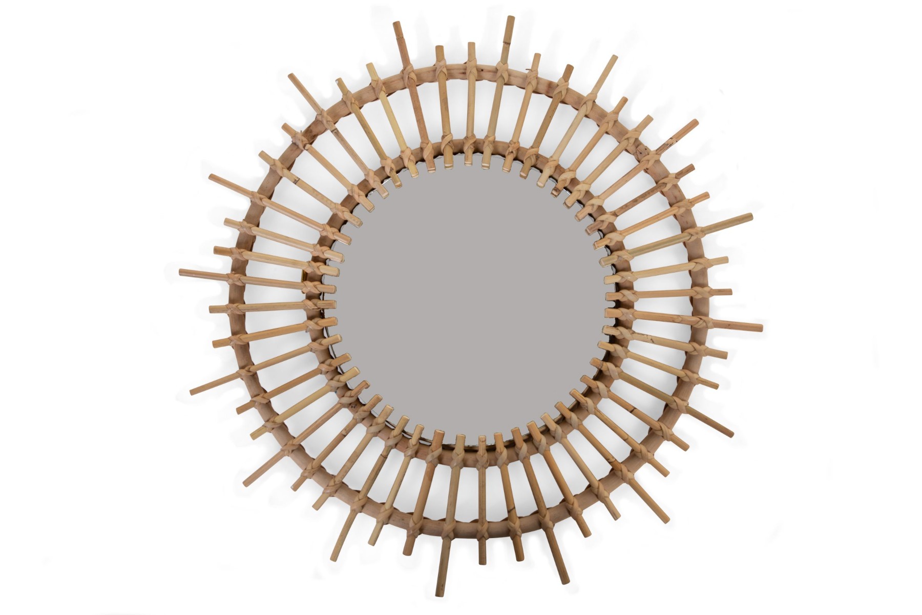 Este precioso espejo de ratán aportará un toque bohemio a cualquier habitación. Está fabricado por Childhome y su diámetro sin ratán es de 29 cm y con ratán de 60 cm.