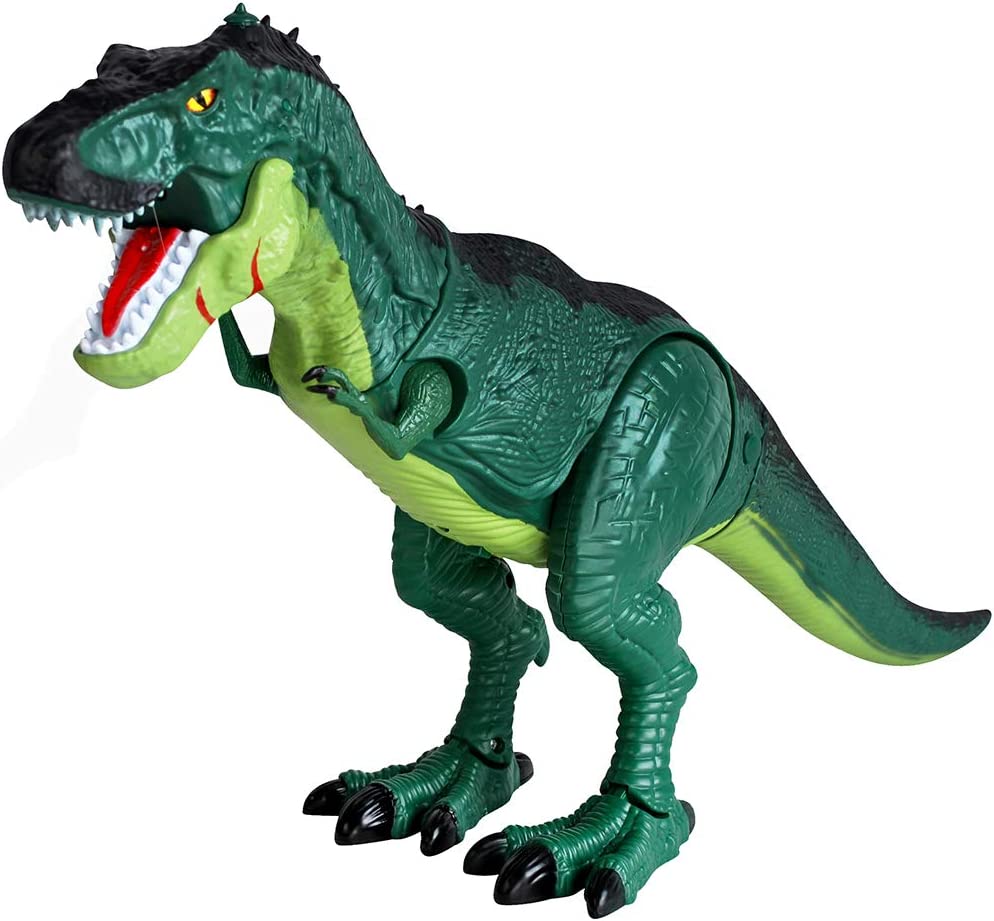 - Efectos de luz y tono: cuando el dinosaurio se mueve, se ilumina la boca y durante el embriagado sale un fuego frío de tu boca. El producto está equipado con un altavoz que permite escuchar sonidos que imitan a los dinosaurios.