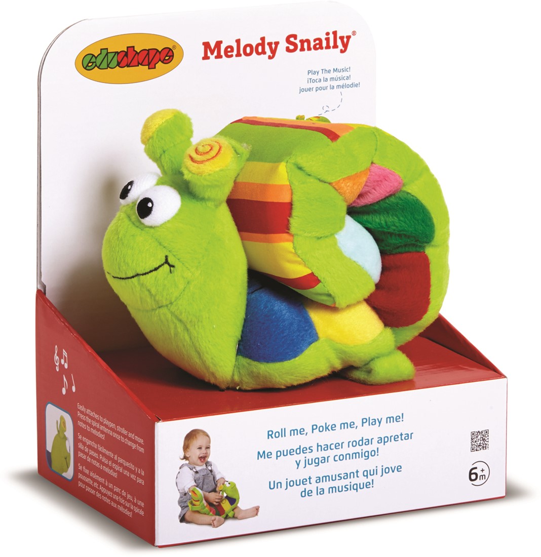 Cada uno de los ocho colores de este peluche Caracol tiene botones suaves, que pueden reproducir melodías o notas individuales.