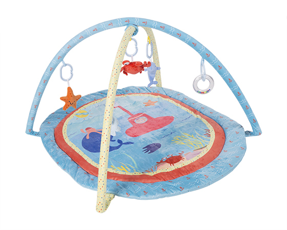 Divertida alfombra de juegos para bebé basada en el mundo submarino, su amiguito el cangrejo y su amiguita la estrella serán los inseparables compañeros de juegos en todas las aventuras de tu bebé.