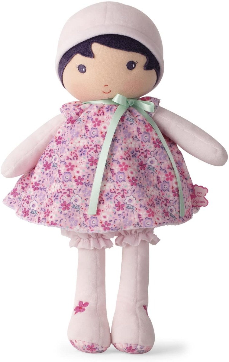 Le presentamos a Fleur K, una bonita muñeca con la imagen de su pequeña. La más alegre de las Ternuras, es muy adorable y risueña, con su vestido de flores, sus flores bordadas en los pies y sus pololos. Las niñas pequeñas podrán divertirse quitándole los pololos, imitando así los gestos de mamá. Una larga cinta en la espalda permite escribir en ella su nombre para que sea aún más preciada.