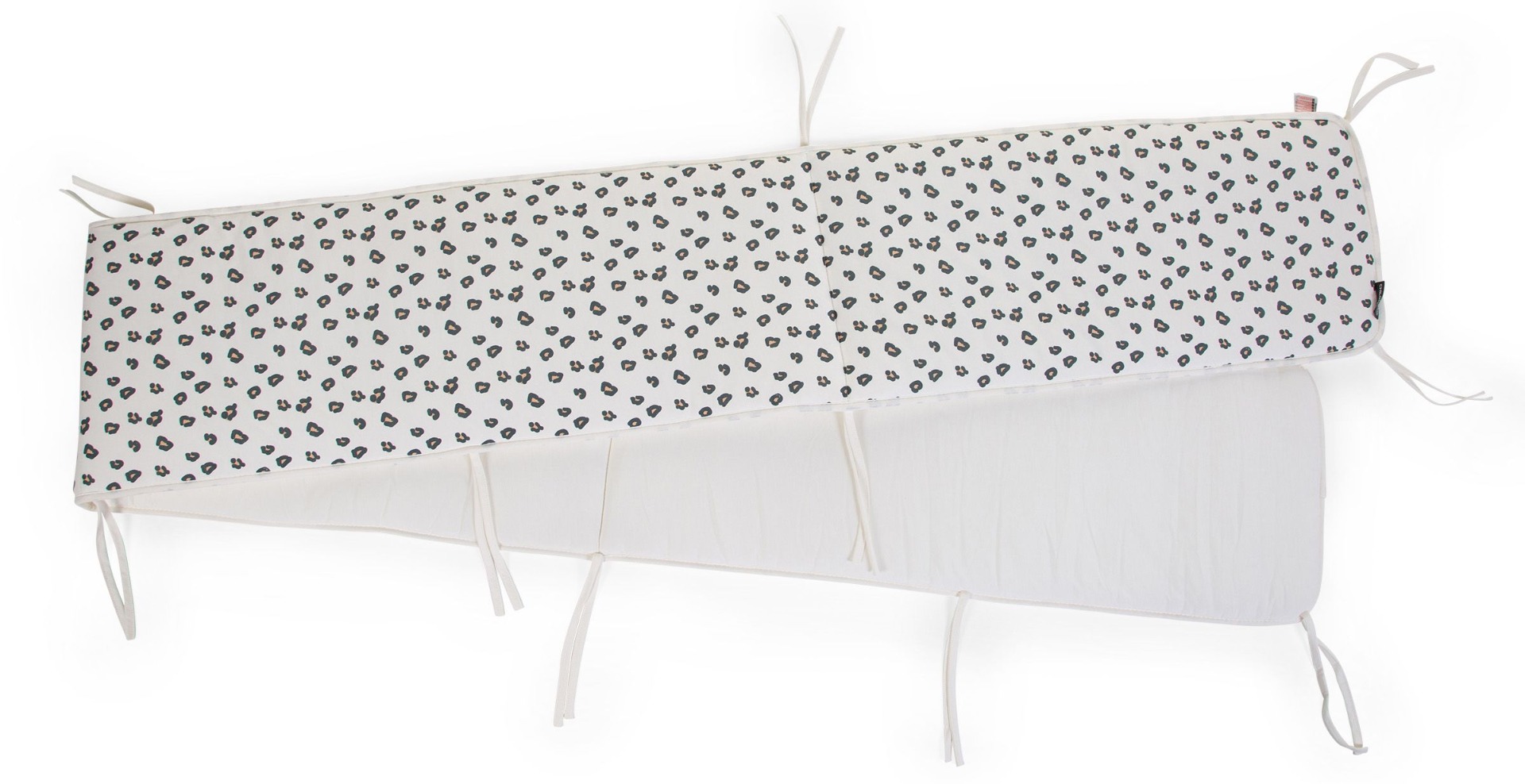 Protección ultrasuave para parque infantil con diseño de leopardos ideal para proteger a tu bebé de los lados duros del parque. La protección del parque se puede utilizar por 2 lados. Un lado tiene un color beige y el otro lado tiene un color muselina. El protector de parque se puede sujetar fácilmente a las barras del parque con cintas, para que tu hijo pueda jugar o rodar por el parque sin preocupaciones.