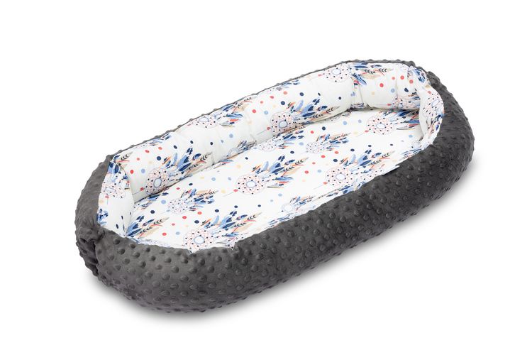 El nido para bebé de Sensillo con precioso diseño de Atrapasueños está diseñado para infantes desde su nacimiento hasta los 6 meses. Está equipado con prácticos botones a presión para facilitar el atado de los lados. La superficie media consiste en un colchón extraíble hecho de espuma PU. La cubierta exterior está hecha de tela de algodón 100% delicado en el interior y tela Minky suave en las partes exteriores del nido. Se incluye una bolsa de viaje para facilitar su transporte.