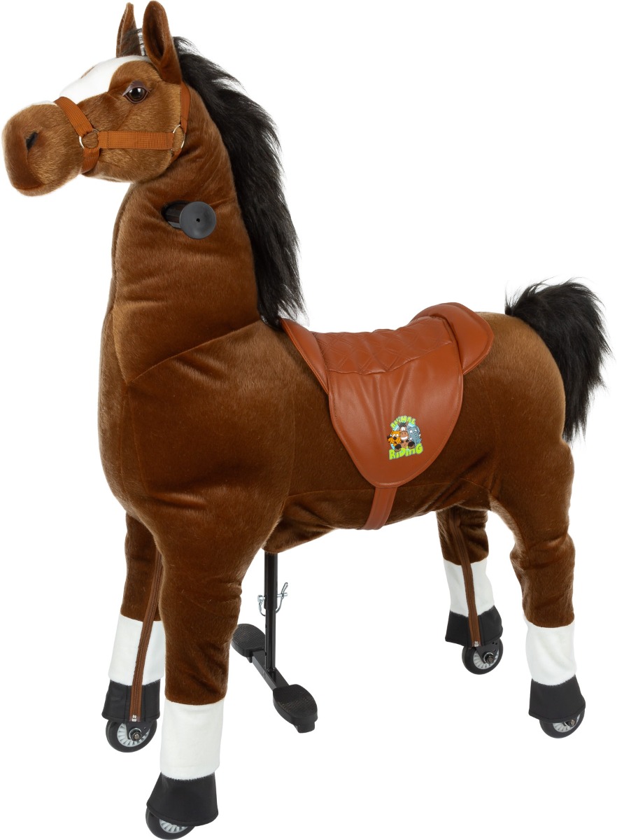 Nuestro pequeño marroncito iguala a un pony verdadero y gracias a sus háblies movimientos equinos ofrece una cabalgada por la casa y el jardín. Nuestro "Rayo" se deja conducir a izquierda y derecha y posée una agradable y suave piel.