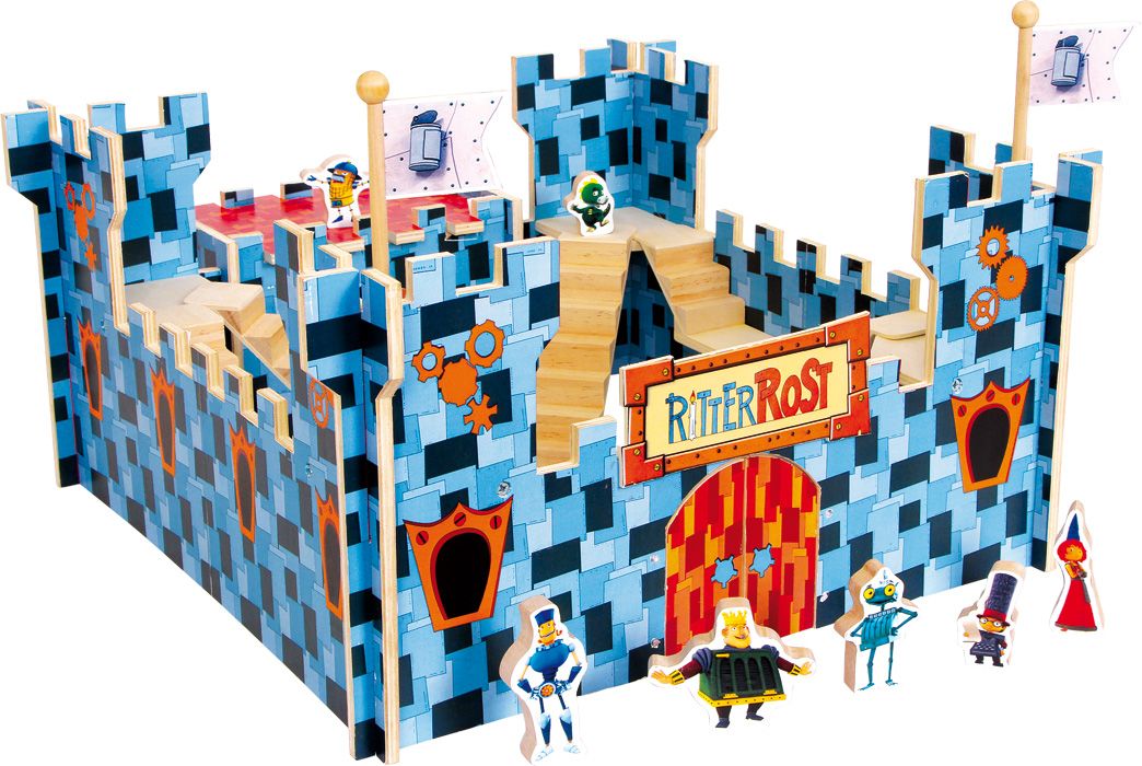 Vivir aventuras en el ambiente justo es fácil con este castillo de madera laminada estable y detalladamente decorada. Los 6 protagonistas están imprimidos sobre figuras de madera y aportan diversión y juego a los niños. El castillo se arma rápidamente.