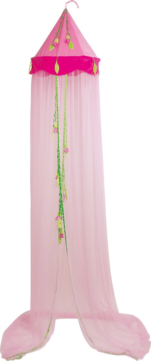 La cúpula, que contrasta con el color, tiene un borde adicional de felpa, flores de tela bellamente trabajadas y cordeles de gasa verde que caen deslumbrantemente desde el borde a lo largo de la fina red permeable al aire. Como accesorio para un adorable retiro en estilo princesa, este toldo está garantizado para hacer latir más rápido el corazón de todos los aficionados a los cuentos de hadas - ¡ya sea como toldo o en verano bajo el gran tilo en el jardín!