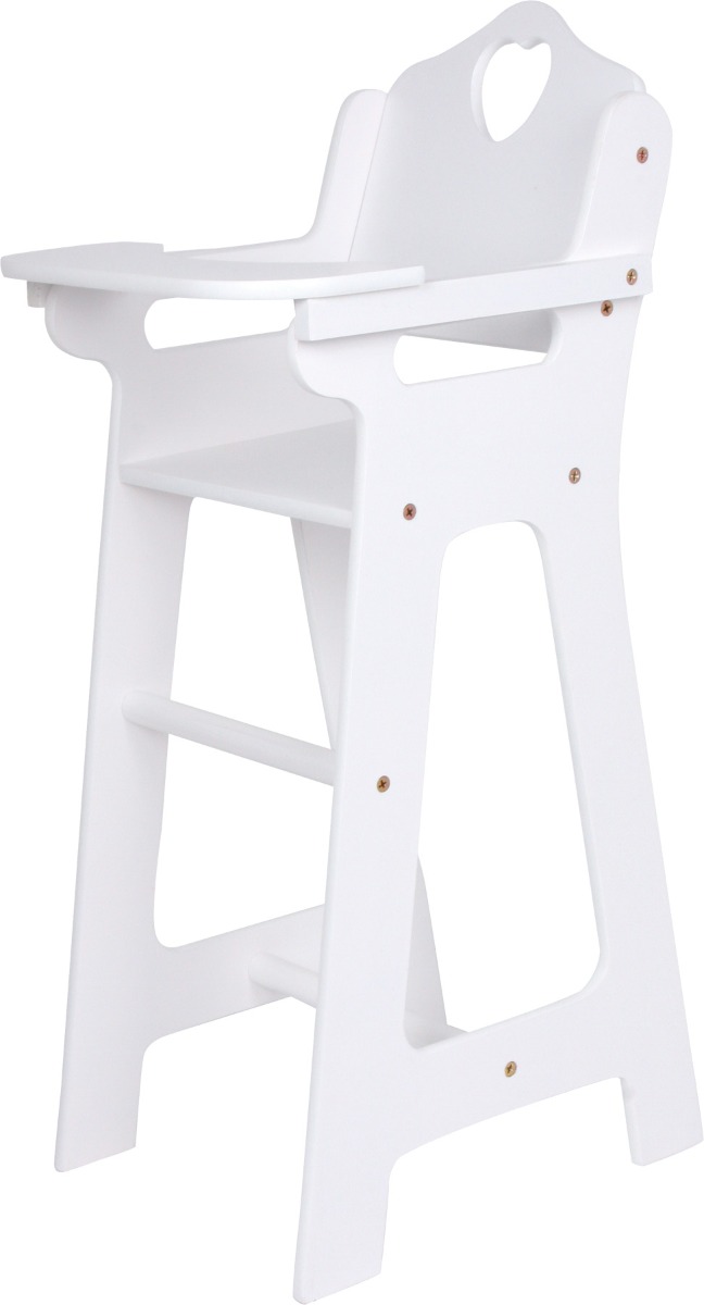 Esta silla alta para muñecas está lacada en color blanco y dispone de mesita plegable.