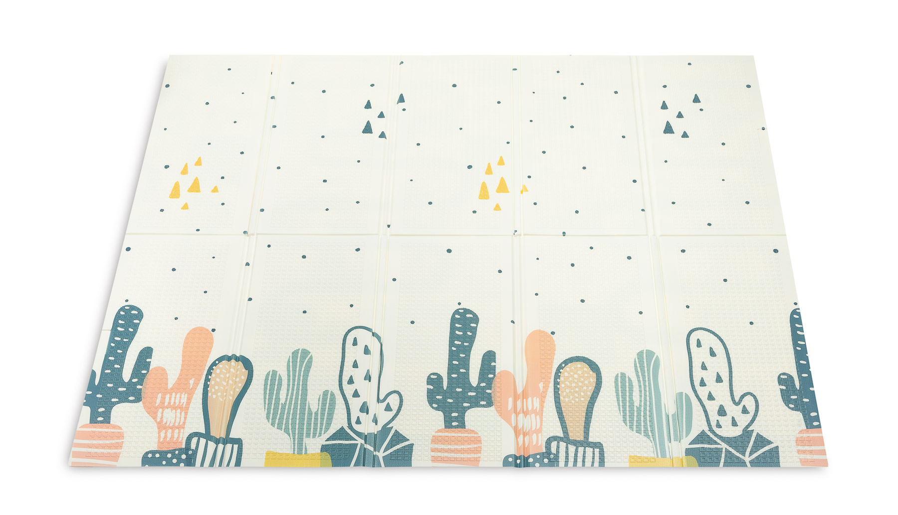 Presentamos la alfombra multifuncional TOYZ con diseño de cactus, la solución ideal para crear un área de juegos encantadora y divertida para niños. Esta alfombra cuenta con numerosas ventajas en comparación con las alfombras tradicionales de tela: no se arruga ni enrolla, es muy difícil de desplazar y resulta fácil de mantener limpia. Sus amplias dimensiones de 200 x 180 cm ofrecen un generoso espacio para jugar o aprender a caminar.