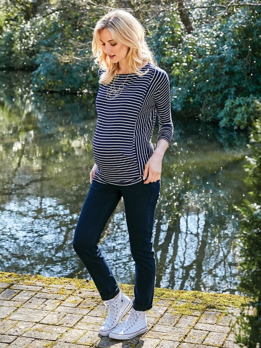 Vaqueros premamá extra cómodos y de corte Skinny más actual. Si estás buscando un pantalón versatil que te acompañe durante todo tu embarazo, este sin duda es una buena opción.