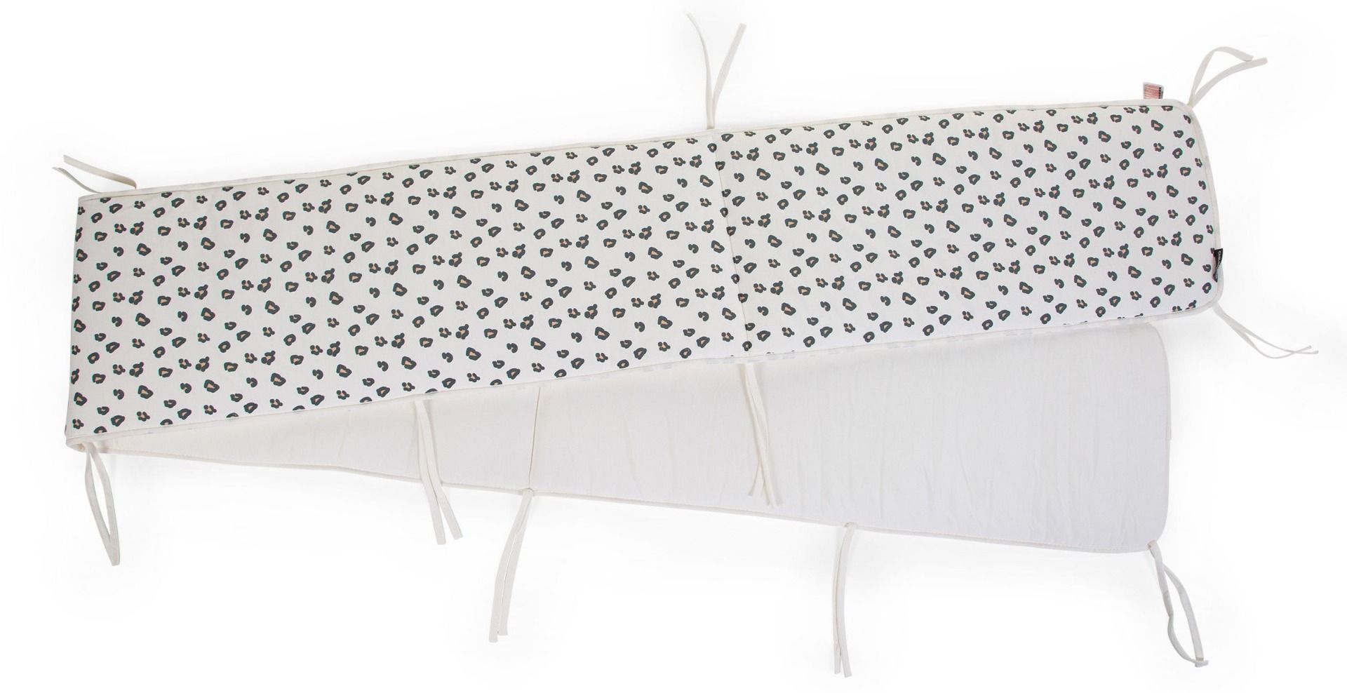 Protección ultrasuave para parque infantil con diseño de leopardos ideal para proteger a tu bebé de los lados duros del parque. La protección del parque se puede utilizar por 2 lados. Un lado tiene un color beige y el otro lado tiene un color muselina. El protector de parque se puede sujetar fácilmente a las barras del parque con cintas, para que tu hijo pueda jugar o rodar por el parque sin preocupaciones.