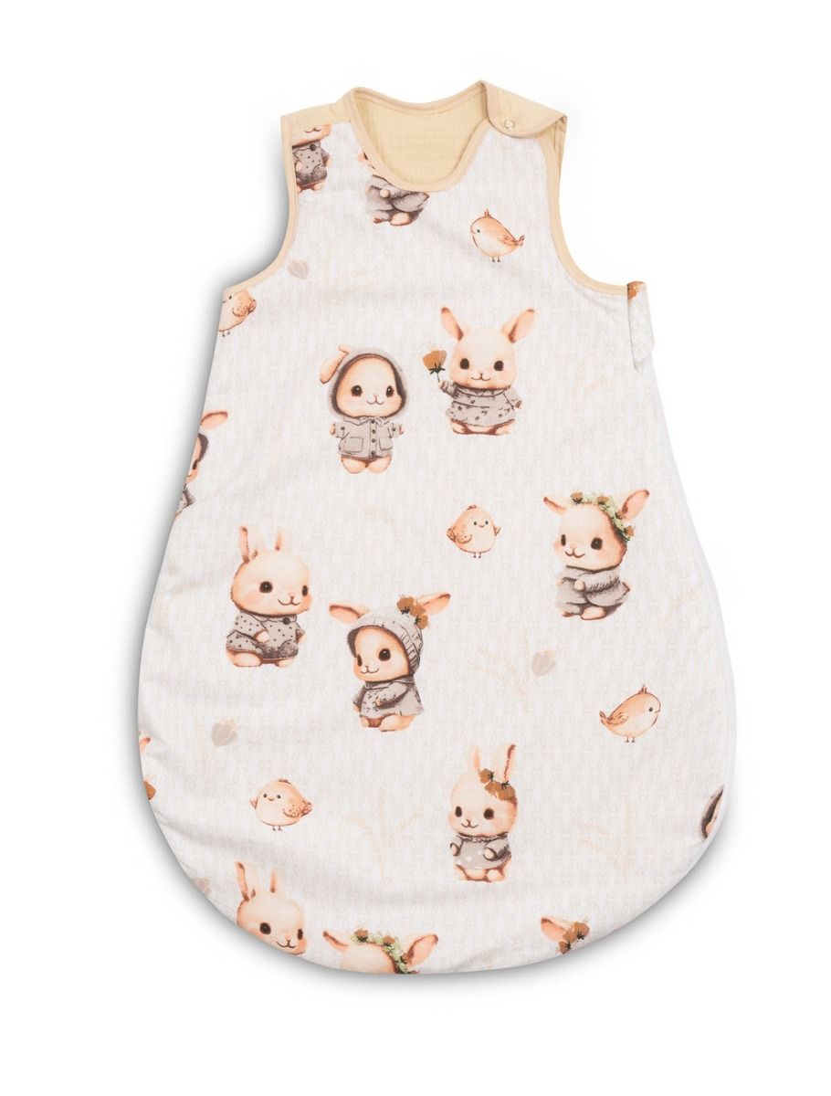 Este encantador saco de dormir en tamaño S (45x70 cm) con un delicado diseño de conejos beige está diseñado para brindar calidez, comodidad y seguridad a tu bebé desde sus primeros días de vida hasta los 9 meses. Confeccionado con una suave cubierta de algodón y relleno hipoalergénico, asegura que el bebé esté cómodo y protegido durante el sueño.