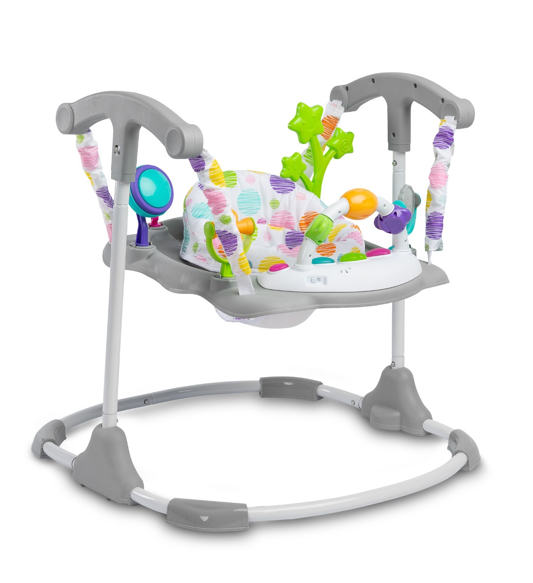El saltador para bebés Cosmo Grey de la línea de productos Toyz Activity es el apoyo perfecto para el desarrollo activo de tu hijo. Lleno de juguetes que captarán su atención, proporcionará mucha diversión y ayudará en su desarrollo. Su diseño especial y los resortes permiten que el niño salte arriba y abajo de forma alegre y segura. Su asiento giratorio 360 grados hace que todos los juguetes sean fácilmente accesibles.