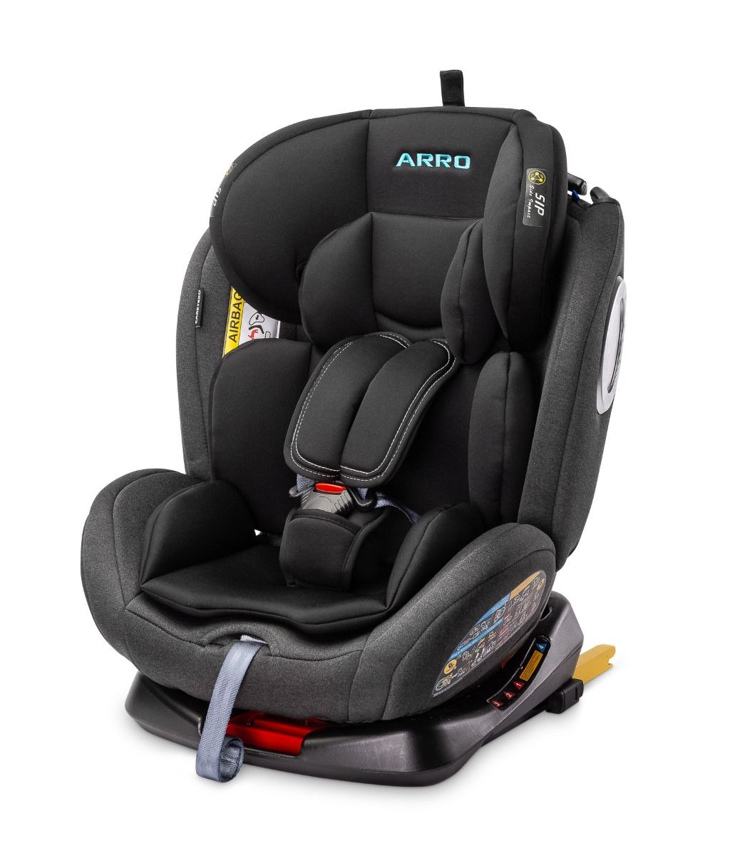 La silla de coche Arro, en un elegante tono negro, ha sido diseñada para niños desde el nacimiento hasta aproximadamente 12 años, abarcando un rango de peso de 0-36 kg. La base giratoria de 360° facilita la inserción del niño y el cambio de posición conforme a la dirección del viaje. Su versatilidad se realza con el ajuste de inclinación de 3 etapas y la incorporación del sistema SIP para protección contra impactos laterales. Además, la silla cuenta con un reductor removible para bebés fabricado con materiales transpirables y cinturones de seguridad de 5 puntos con ajuste de longitud. El diseño en color negro no sólo añade un toque de sofisticación, sino que también se complementa con una estructura duradera y materiales de alta calidad. Con Arro, cada viaje es una experiencia cómoda, segura y elegante.